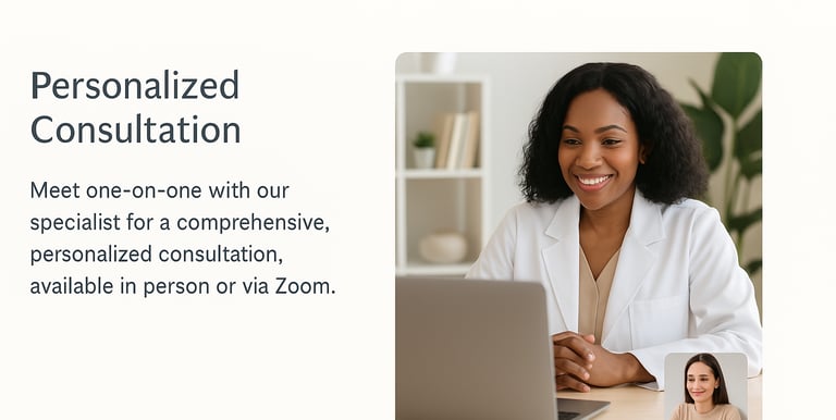 At SD Williams Life and Healthcare, every consultation is designed around you. We offer private one-on-one sessions — available in person or virtually via Zoom — to discuss your unique needs, answer your questions, and create a customized care plan.